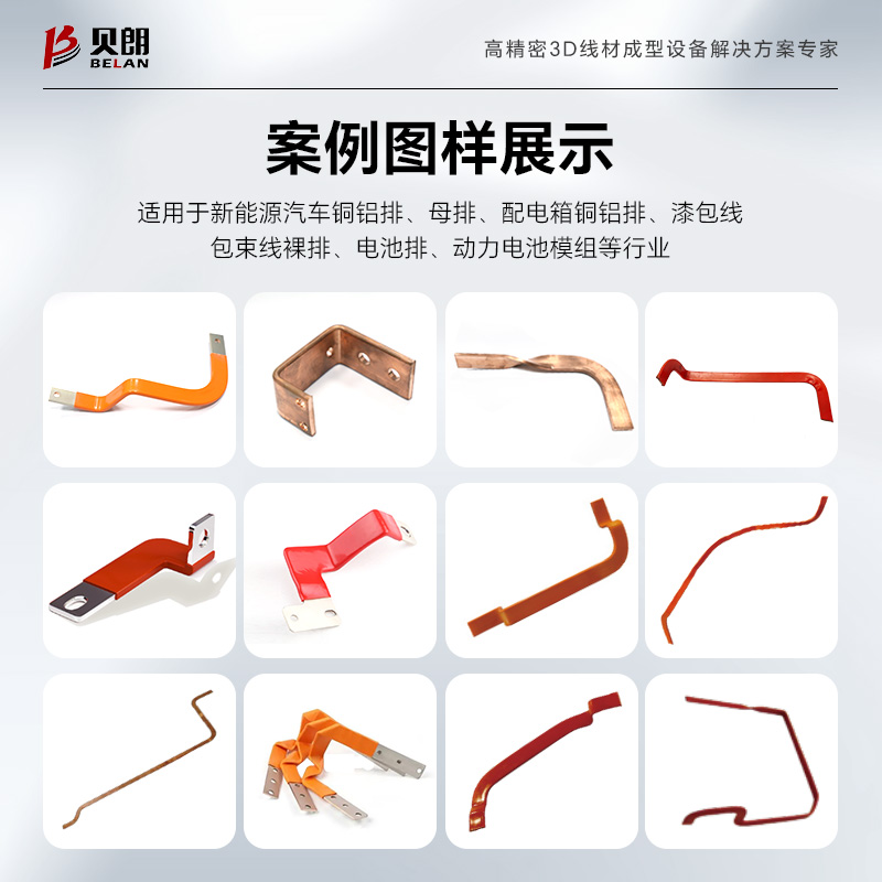 8.該設(shè)備是專門針對(duì)銅、鋁排自動(dòng)折彎成型的一款設(shè)備,適用于生產(chǎn):新能源汽車銅鋁排、母排、配電箱銅鋁排、