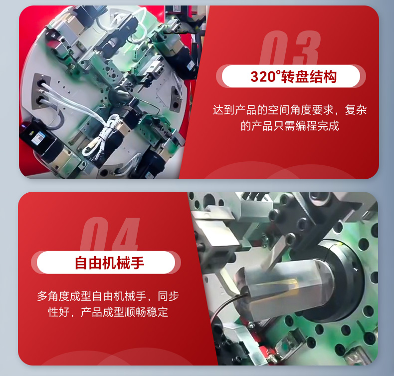 產品特點:該設備是專門針對漆包銅線自動折彎成型的一款設備,適用于生產:新能源線圈、發動機組件、驅動電機組件、發電機配件、定子組件、轉子組件、新能源汽車電機組件、動力總成組件、開關導線、剎車助力系統電機組件等行業。
